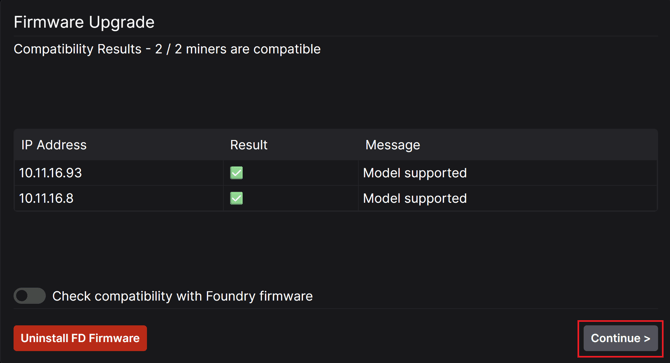 1) First scan you IP ranges in Optiscan and select the miners you are looking to update.