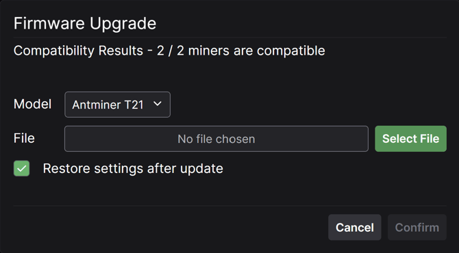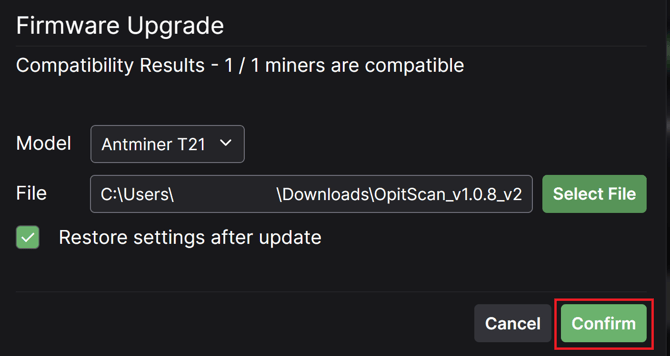 6) Finally click confirm to update the miners.